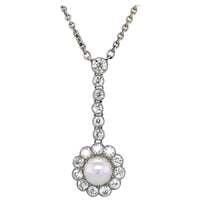 Belle Époque Natural Pearl and Diamond Necklace in Platinum and Gold